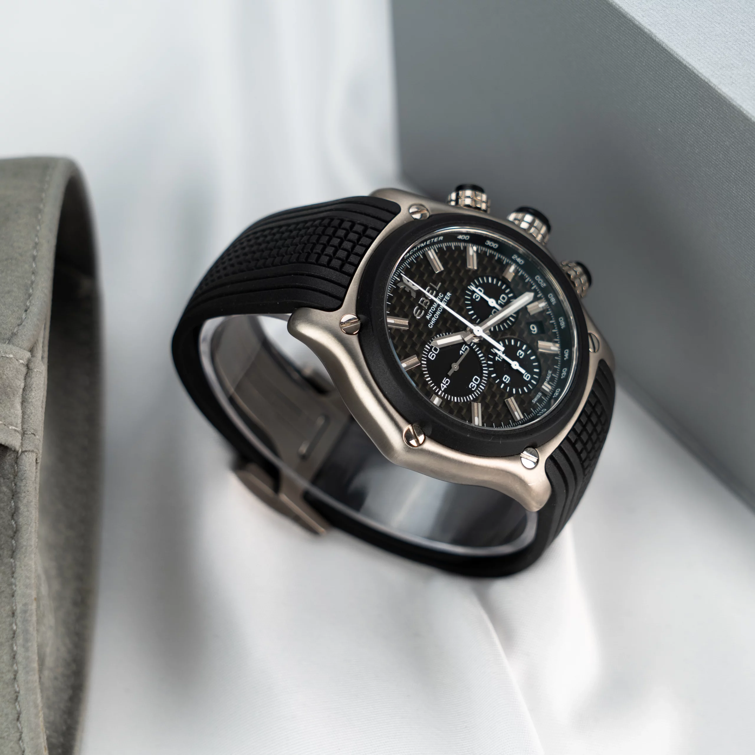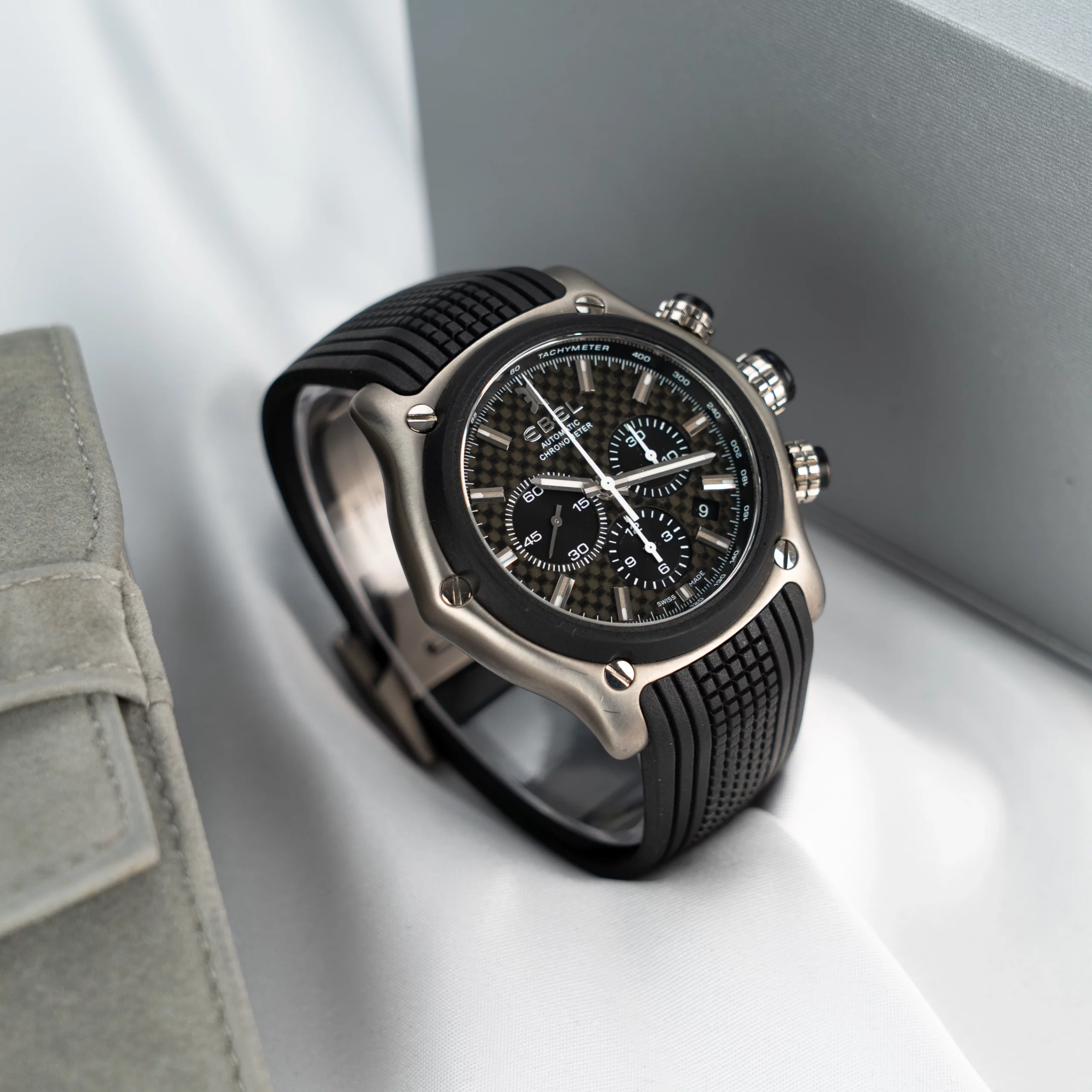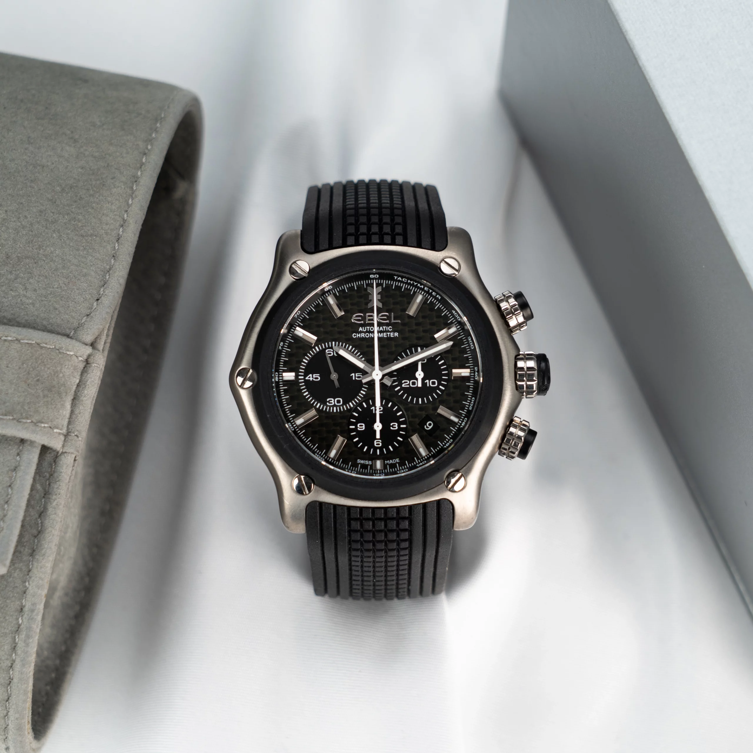 * Lieferumfang Travelpouch und Servicerechnung (Ersatz Armband + Tausch aller Dichtungen, Drücker und Glas)